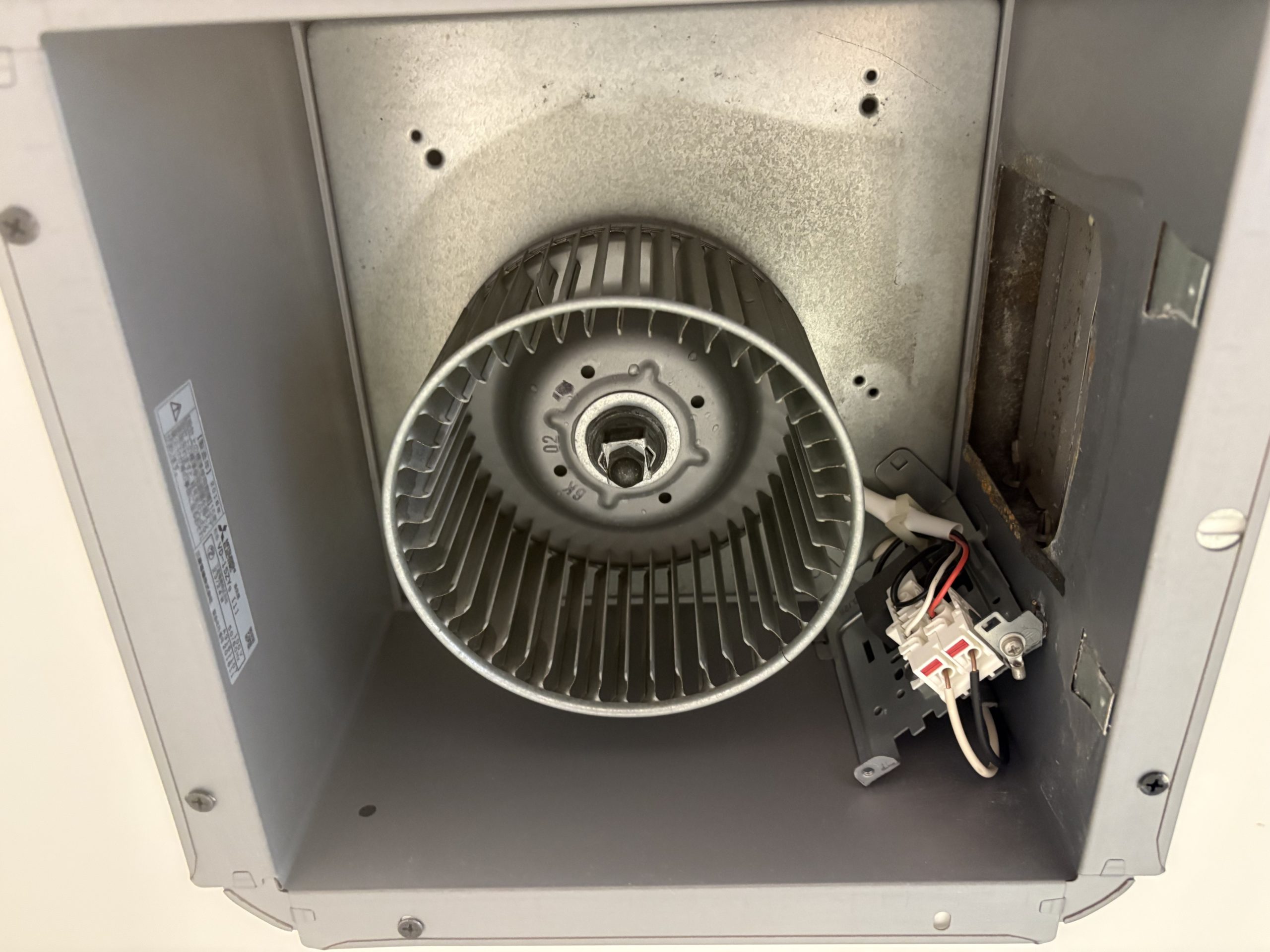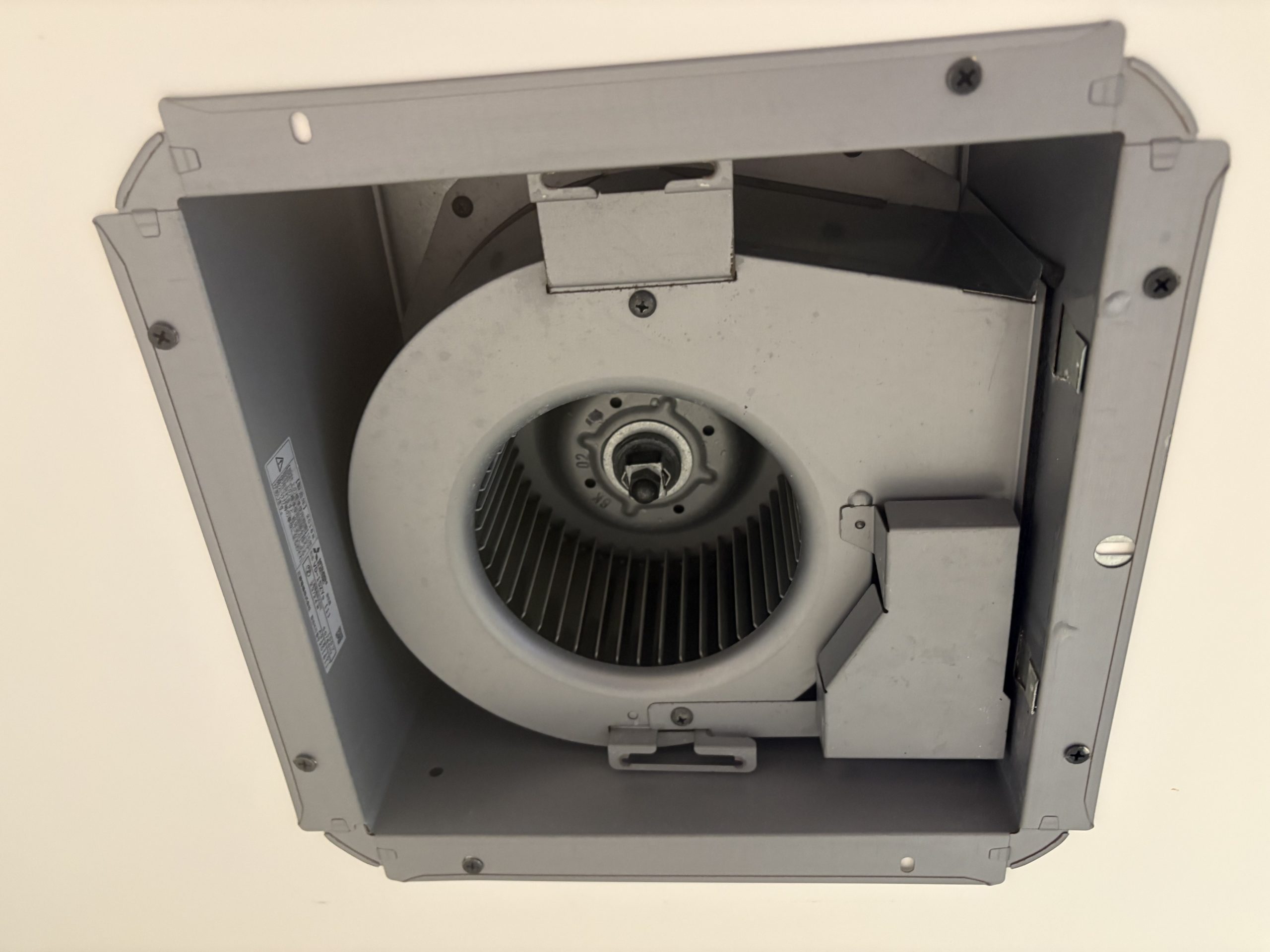 外観はキレイに見えても、内部には油とホコリが固着し換気能力の低下を招きます。