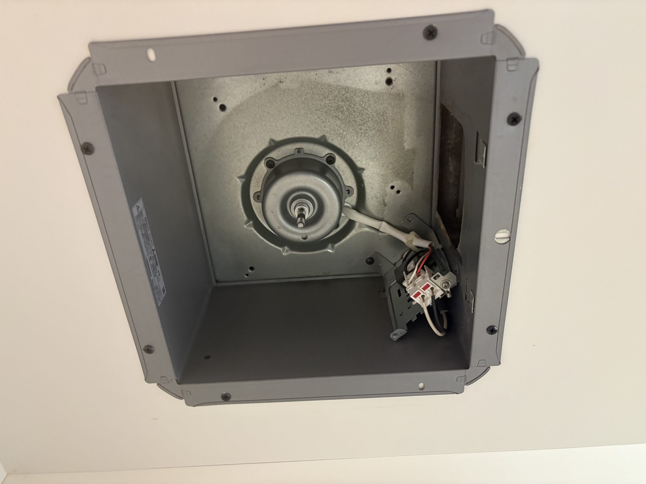 換気扇周辺の天井、壁の汚れもキレイにし、お写真の通り洗浄した部品を丁寧に組み上げていきます。