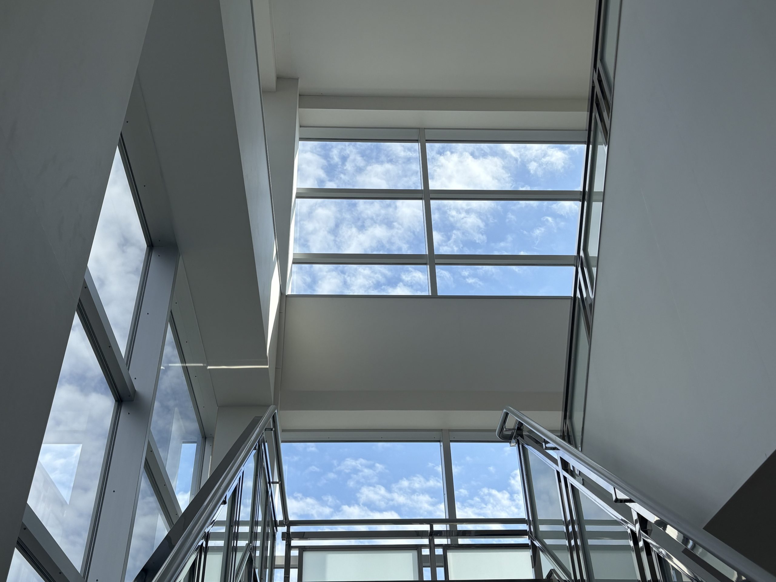 吹き抜けや階段まわりのガラスは汚れが目立ちやすく清掃が危険な箇所です。逆に綺麗に保たれれば、「明るく清潔な空間づくり」「建物の美観維持」「来客・居住者への印象向上」に繋がります。