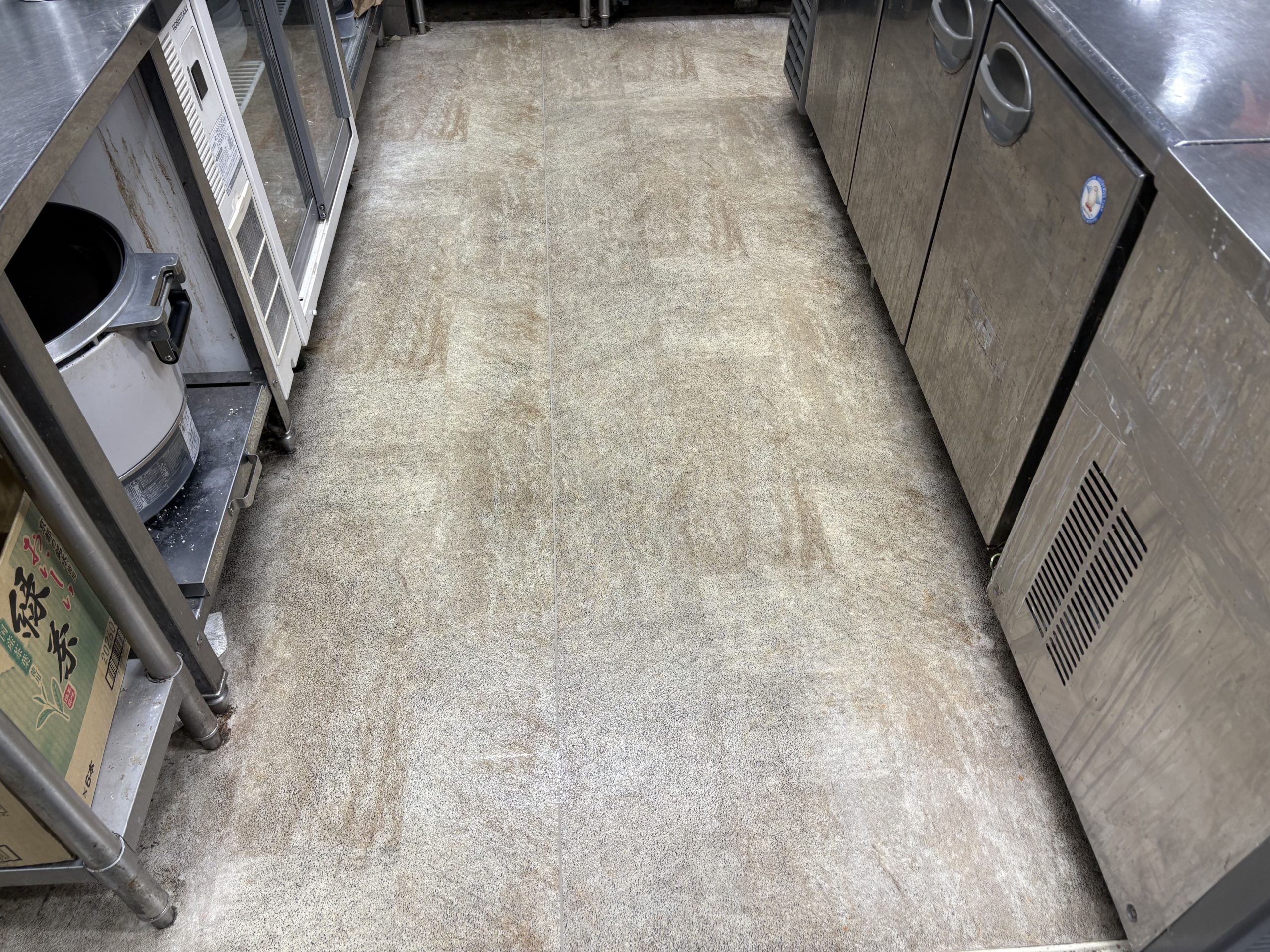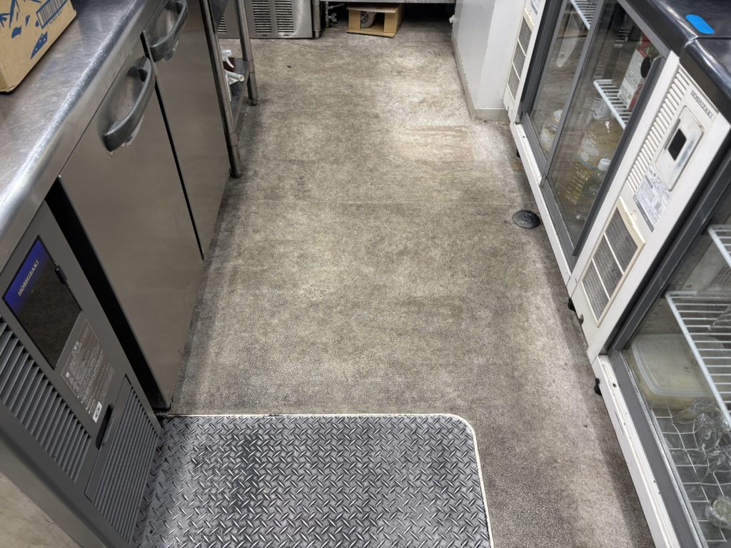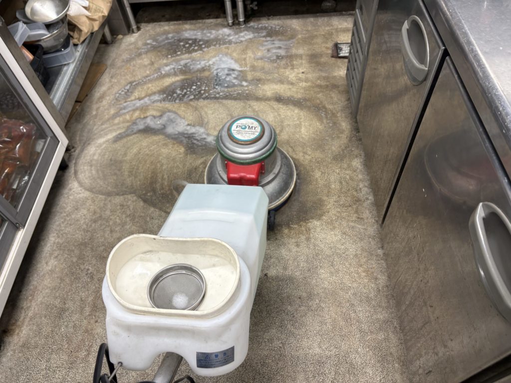 定期的に作業させて頂いている焼き肉店様の厨房の床洗浄をさせて頂きました。