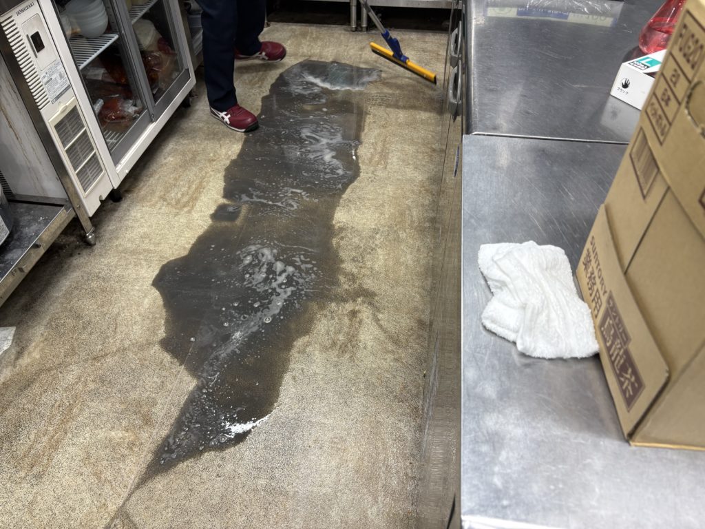 浜松市中央区の焼き肉店の厨房の床洗浄